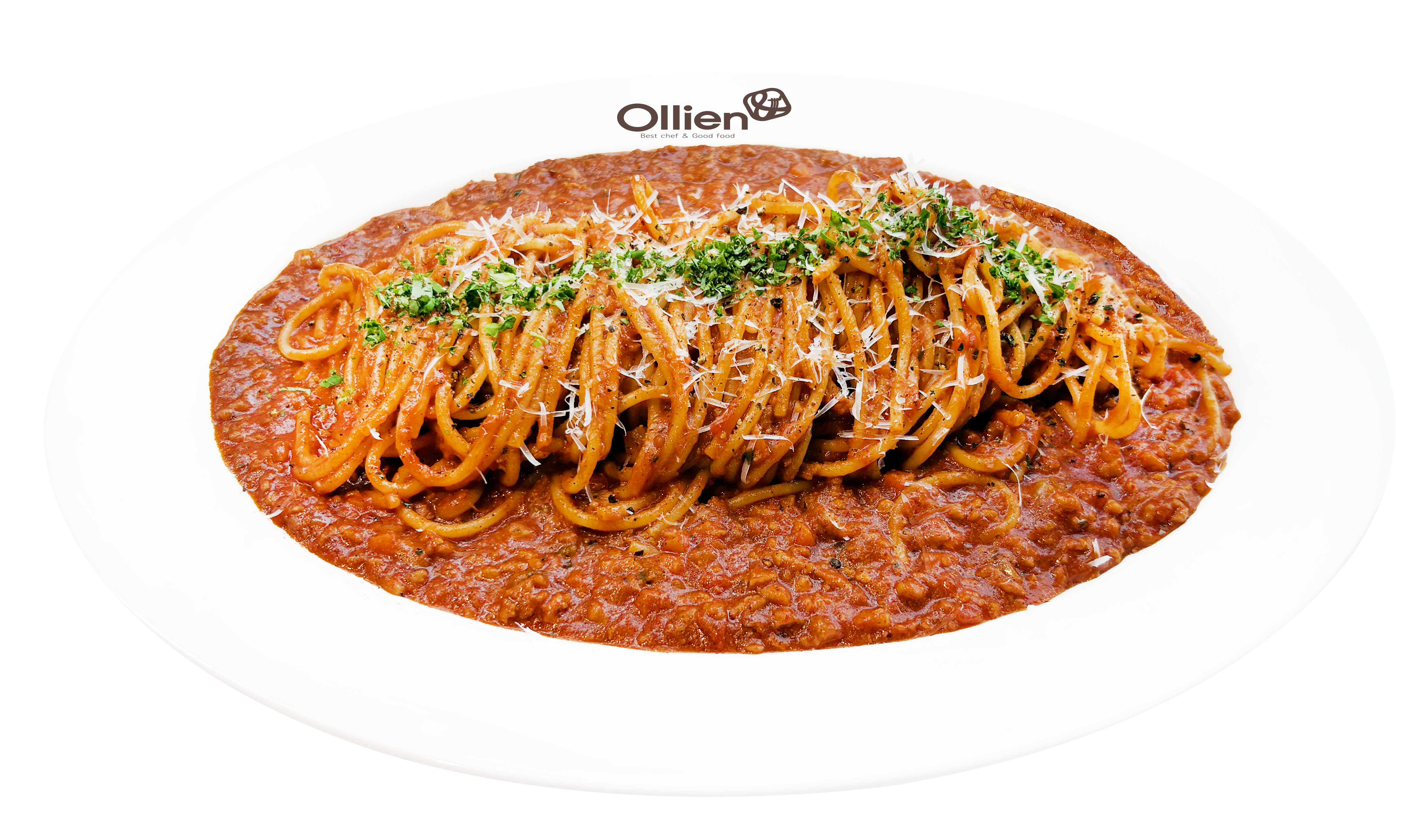 최상급 바질, 파마산치즈, 엑스트라버진 올리브오일이 들어간 미트스파게티